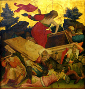 4. DISCOVERY OF THE EMPTY TOMB – P.2025 P.2025 – §2 As we approach the time of the resurrection of Jesus on this early Sunday morning, it should be recalled that the ten apostles were sojourning at the home of Elijah and Mary Mark, where they were asleep in the upper chamber, resting on the very couches whereon they reclined during the last supper with their Master. This Sunday morning they were all there assembled except Thomas. Thomas was with them for a few minutes late Saturday night when they first got together, but the sight of the apostles, coupled with the thought of what had happened to Jesus, was too much for him. He looked his associates over and immediately left the room, going to the home of Simon in Bethphage, where he thought to grieve over his troubles in solitude. The apostles all suffered, not so much from doubt and despair as from fear, grief, and shame. P.2025 – §3 At the home of Nicodemus there were gathered together, with David Zebedee and Joseph of Arimathea, some twelve or fifteen of the more prominent of the Jerusalem disciples of Jesus. At the home of Joseph of Arimathea there were some fifteen or twenty of the leading women believers. Only these women abode in Joseph's house, and they had kept close within during the hours of the Sabbath day and the evening after the Sabbath, so that they were ignorant of the military guard on watch at the tomb; neither did they know that a second stone had been rolled in front of the tomb, and that both of these stones had been placed under the seal of Pilate. P.2025 – §4 A little before three o'clock this Sunday morning, when the first signs of day began to appear in the east, five of the women started out for the tomb of Jesus. They had prepared an abundance of special embalming lotions, and they carried many linen bandages with them. It was their purpose more thoroughly to give the body of Jesus its death anointing and more carefully to wrap it up with the new bandages. P.2025 – §5 The women who went on this mission of anointing Jesus' body were: Mary Magdalene, Mary the mother of the Alpheus twins, Salome the mother of the Zebedee brothers, Joanna the wife of Chuza, and Susanna the daughter of Ezra of Alexandria. P.2025 – §6 It was about half past three o'clock when the five women, laden with their ointments, arrived before the empty tomb. As they passed out of the Damascus gate, they encountered a number of soldiers fleeing into the city more or less panic-stricken, and this caused them to pause for a few minutes; but when nothing more developed, they resumed their journey. P.2025 – §7 They were greatly surprised to see the stone rolled away from the entrance to the tomb, inasmuch as they had said among themselves on the way out, "Who will help us roll away the stone?" They set down their burdens and began to look upon one another in fear and with great amazement. While they stood there, P.2026 – §0 atremble with fear, Mary Magdalene ventured around the smaller stone and dared to enter the open sepulchre. This tomb of Joseph was in his garden on the hillside on the eastern side of the road, and it also faced toward the east. By this hour there was just enough of the dawn of a new day to enable Mary to look back to the place where the Master's body had lain and to discern that it was gone. In the recess of stone where they had laid Jesus, Mary saw only the folded napkin where his head had rested and the bandages wherewith he had been wrapped lying intact and as they had rested on the stone before the celestial hosts removed the body. The covering sheet lay at the foot of the burial niche. P.2026 – §1 After Mary had tarried in the doorway of the tomb for a few moments (she did not see distinctly when she first entered the tomb), she saw that Jesus' body was gone and in its place only these grave cloths, and she uttered a cry of alarm and anguish. All the women were exceedingly nervous; they had been on edge ever since meeting the panicky soldiers at the city gate, and when Mary uttered this scream of anguish, they were terror-stricken and fled in great haste. And they did not stop until they had run all the way to the Damascus gate. By this time Joanna was conscience-stricken that they had deserted Mary; she rallied her companions, and they started back for the tomb. P.2026 – §2 As they drew near the sepulchre, the frightened Magdalene, who was even more terrorized when she failed to find her sisters waiting when she came out of the tomb, now rushed up to them, excitedly exclaiming: "He is not there–they have taken him away!" And she led them back to the tomb, and they all entered and saw that it was empty. P.2026 – §3 All five of the women then sat down on the stone near the entrance and talked over the situation. It had not yet occurred to them that Jesus had been resurrected. They had been by themselves over the Sabbath, and they conjectured that the body had been moved to another resting place. But when they pondered such a solution of their dilemma, they were at a loss to account for the orderly arrangement of the grave cloths; how could the body have been removed since the very bandages in which it was wrapped were left in position and apparently intact on the burial shelf? P.2026 – §4 As these women sat there in the early hours of the dawn of this new day, they looked to one side and observed a silent and motionless stranger. For a moment they were again frightened, but Mary Magdalene, rushing toward him and addressing him as if she thought he might be the caretaker of the garden, said, "Where have you taken the Master? Where have they laid him? Tell us that we may go and get him." When the stranger did not answer Mary, she began to weep. Then spoke Jesus to them, saying, "Whom do you seek?" Mary said: "We seek for Jesus who was laid to rest in Joseph's tomb, but he is gone. Do you know where they have taken him?" Then said Jesus: "Did not this Jesus tell you, even in Galilee, tha